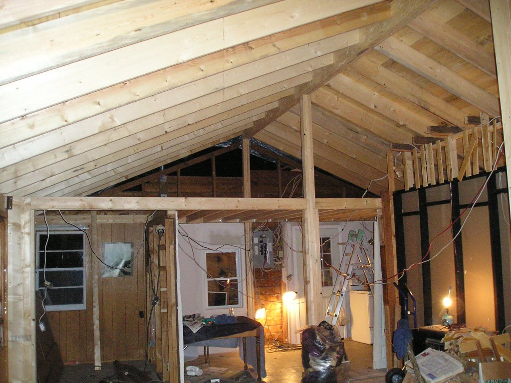 Adding function to an existing building by building an addition can help preserve the structure and make it more relevant to your life today. This series was an addition on a 1960’s cottage. The job took place in stages over two seasons. Stage one was a seasonal covered porch. Stage two was a complete rebuild of the roof structure of the original cottage. New piers, engineered beams, engineered buttresses and a bonus loft.